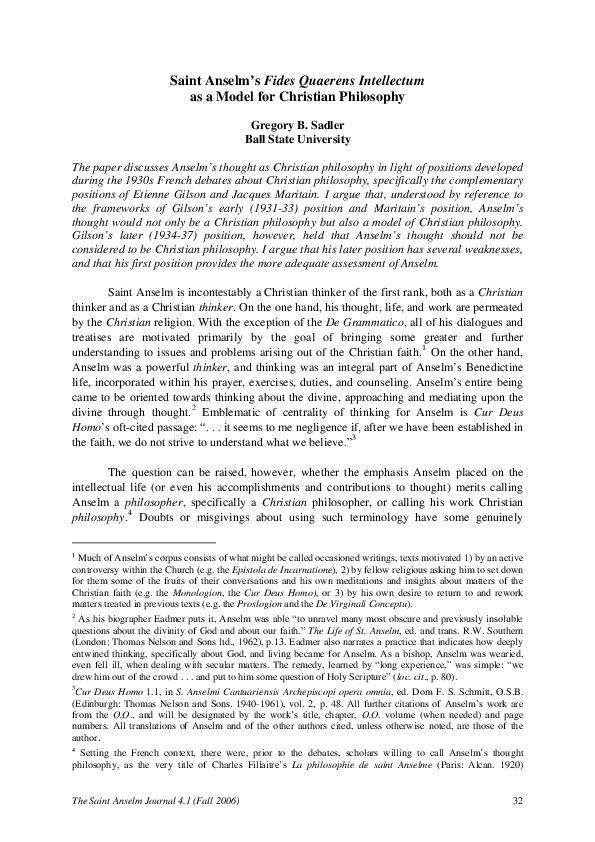 Pdf Saint Anselm S Fides Quaerens Intellectum As A Model For Christian Philosophy Gregory Sadler Academia Edu