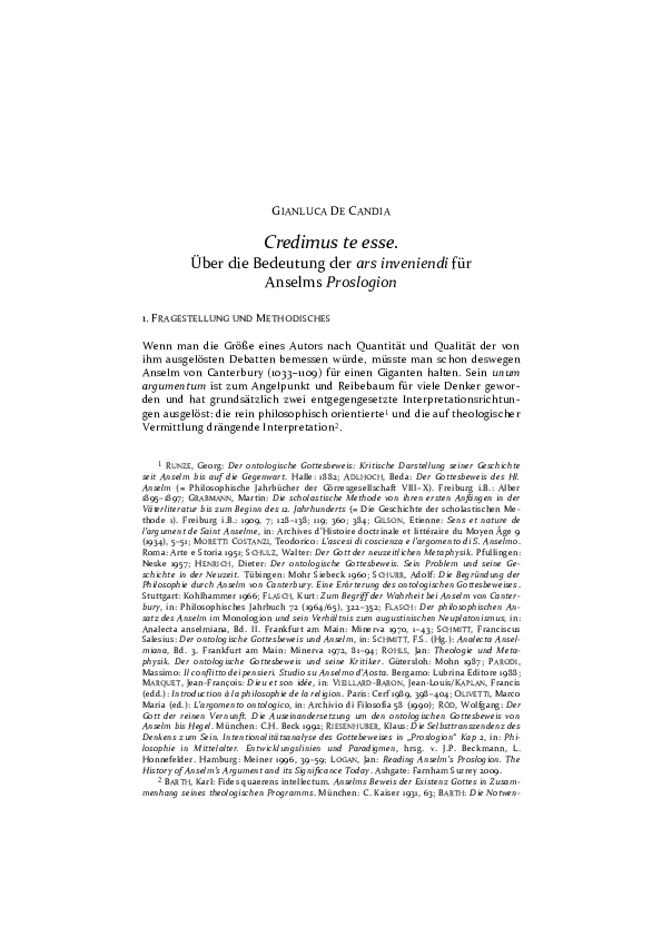 Pdf Credimus Te Esse Uber Die Bedeutung Der Ars Inveniendi Fur Anselms Proslogion Gianluca De Candia Academia Edu