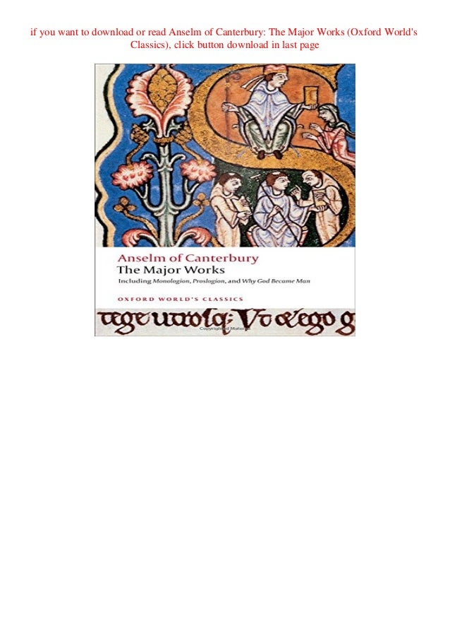 Download Pdf Anselm Of Canterbury The Major Works Oxford World S Cla
